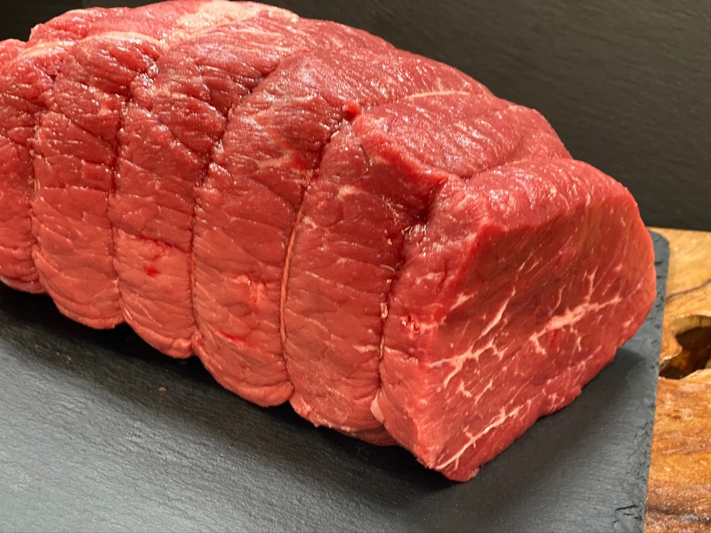 A lean cut typically used for Baron of Beef. Extra fat is available for roasting if requested.