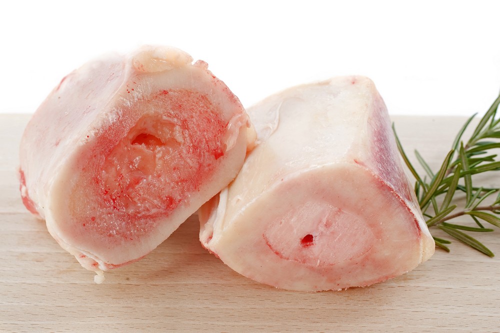 Raw beef marrows cut into 1 to 1 1/2 ” pieces.