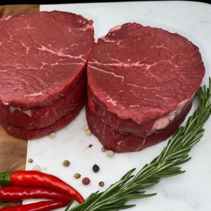 Well-marbled cut that consists of two tender steaks – the strip and tenderloin – connected by a T-shaped bone.