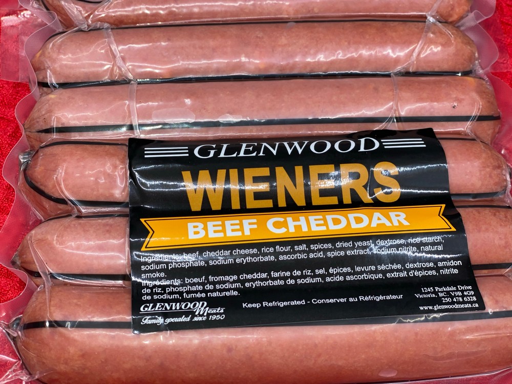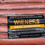 Made and smoked in house, fine ground all beef with cheddar cheese pieces. So much better than a store bought hotdog, give them a try!