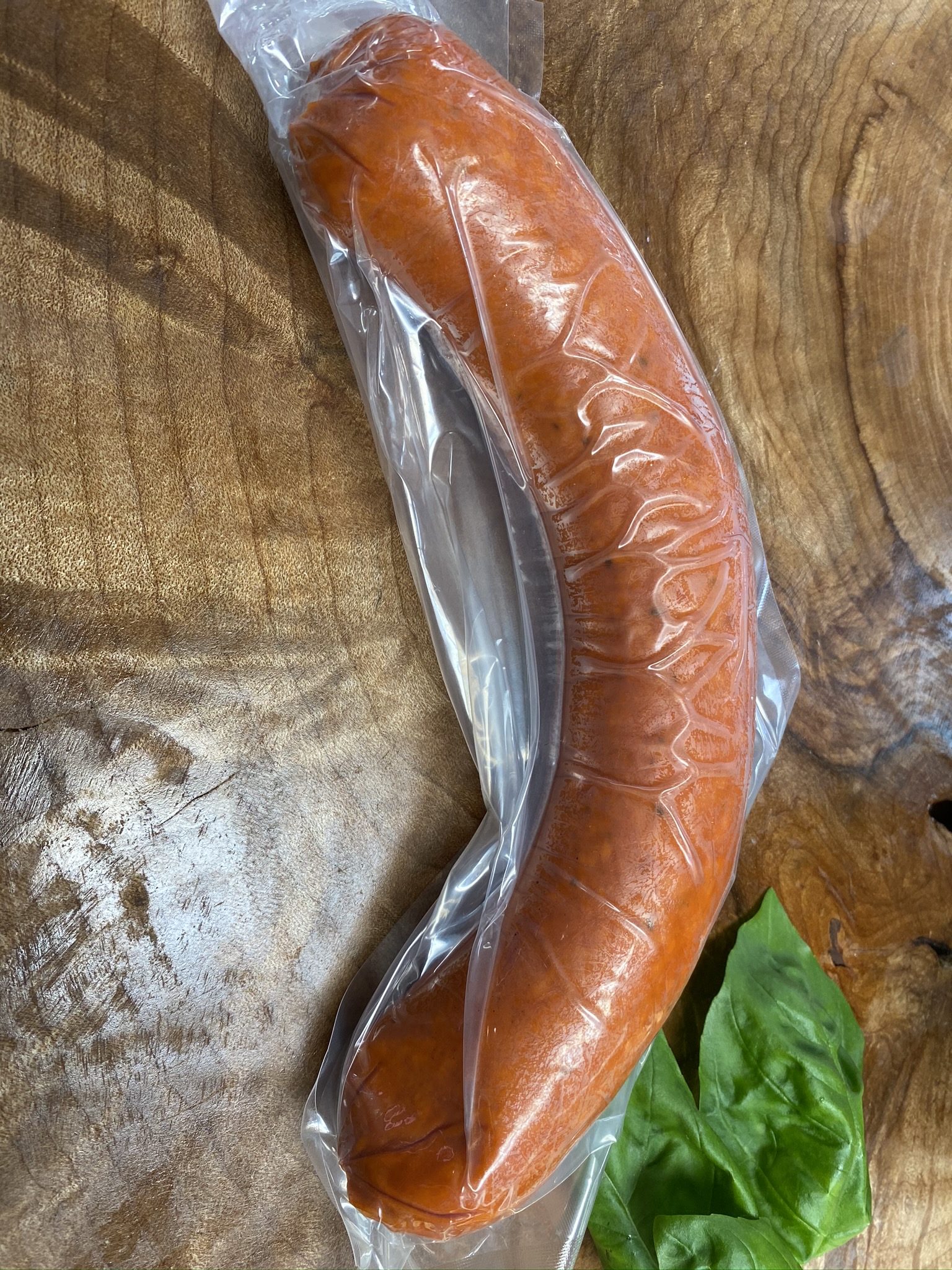 375gr. Made and smoked in house, finely ground pork seasoned with garlic and spices. Perfect with cheese and crackers , cut up and mixed into pastas or fried up with some eggs or perogies.