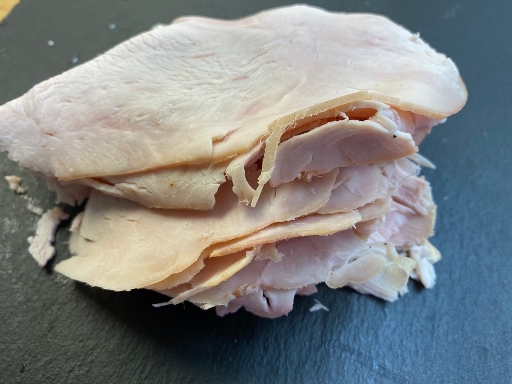 Roasted in house, fresh sliced, fully cooked premium boneless turkey breast.
