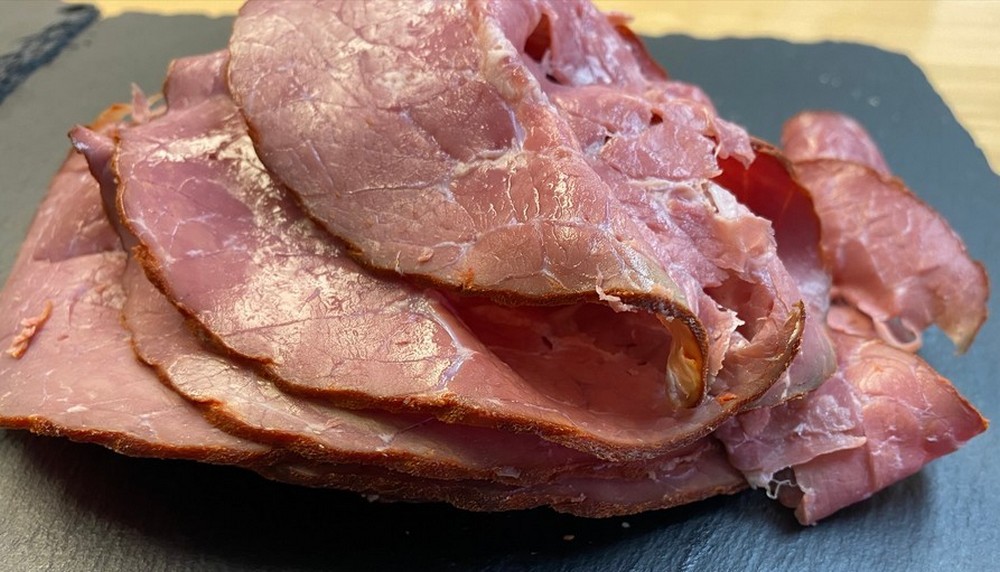 Cured and smoked in house, premium boneless beef. Sliced fresh.