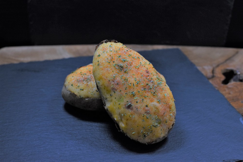 Our twice-baked potatoes are a great pairing for any meal! Two halves per package. Russet Bakers Potato mixed with house made bacon bits, cheddar cheese and green onion. Heat and serve.