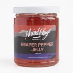A thrill seeker’s spin on a traditional red pepper and garlic jelly. This translucent jelly with suspended shaved garlic and hidden fire bombs allows the consumer to taste the full fruity flavour of the Carolina Reaper. Caution: This jelly is as addictive as it is spicy.