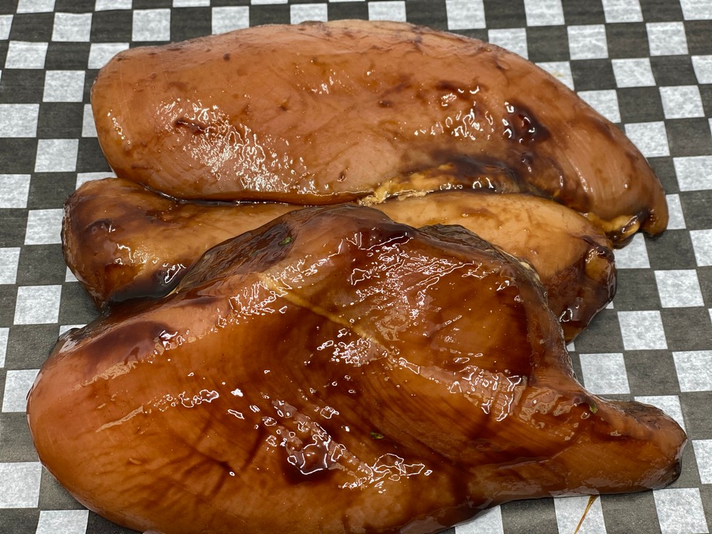 Teriyaki marinated chicken breast ready for the grill, oven or to be pan fried and enjoyed with one of our deli salads.