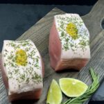 Boneless loin pork chops stuffed with our house made Apricot Curry Stuffing: Breadcrumbs, Onion, Apricots, Curry Powder, Parsley, Orange Juice and Garlic. Sweet with a touch of spice. Bake at 350F until the internal temperature reaches 165F.