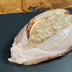 A single skin on chicken breast stuffed with our Spinach Artichoke bread stuffing.