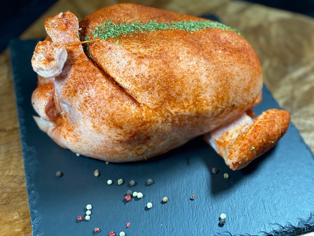 A whole chicken with the breast and thigh deboned and stuffed with our house made Apricot Curry Stuffing: Breadcrumbs, Onion, Apricots, Curry Powder, Parsley, Orange Juice and Garlic. Sweet with a touch of spice.