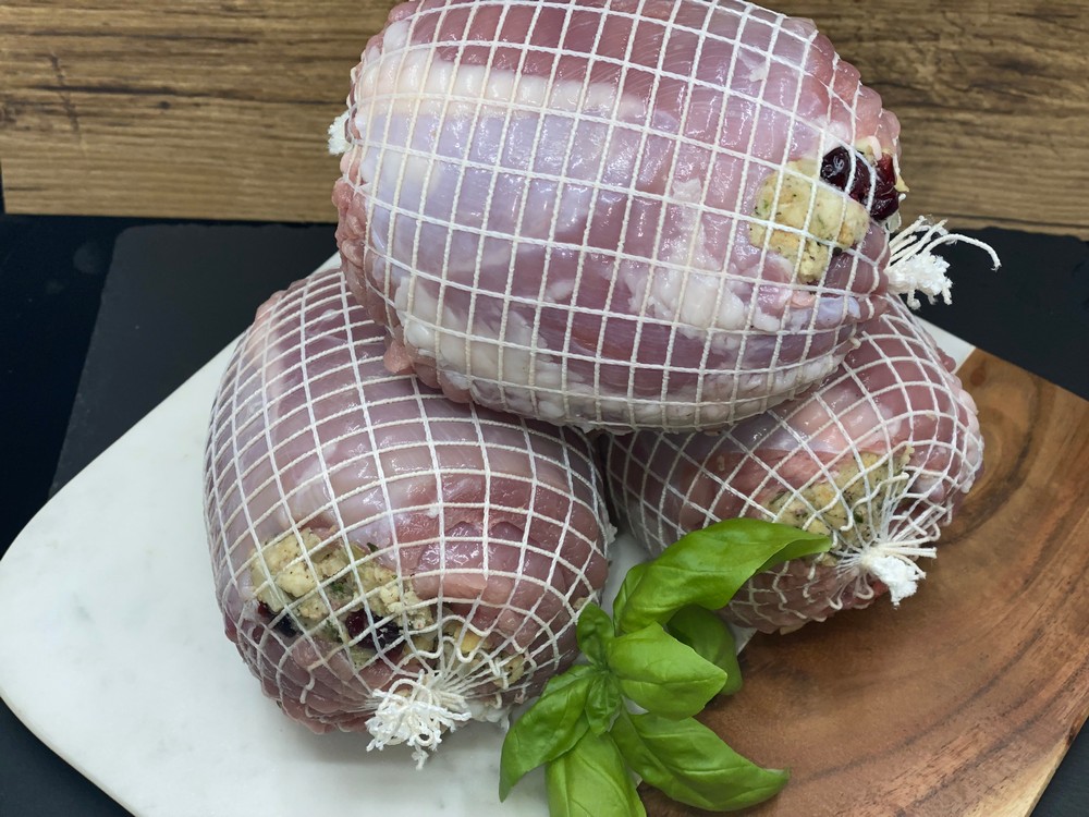 Made with our house made Old Fashion Stuffing: breadcrumbs, celery, onions, parsley, dried cranberry and a pinch of garlic.